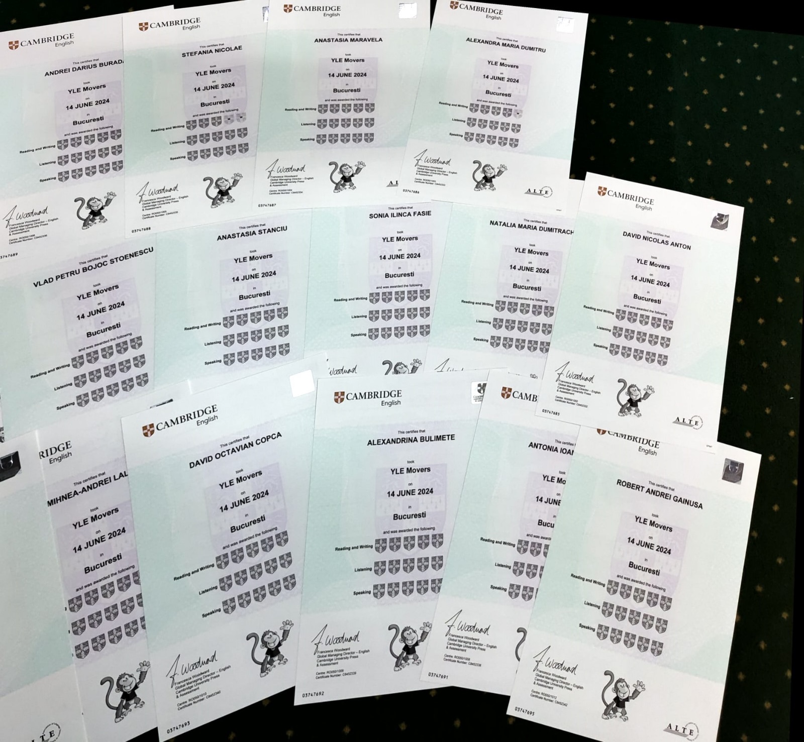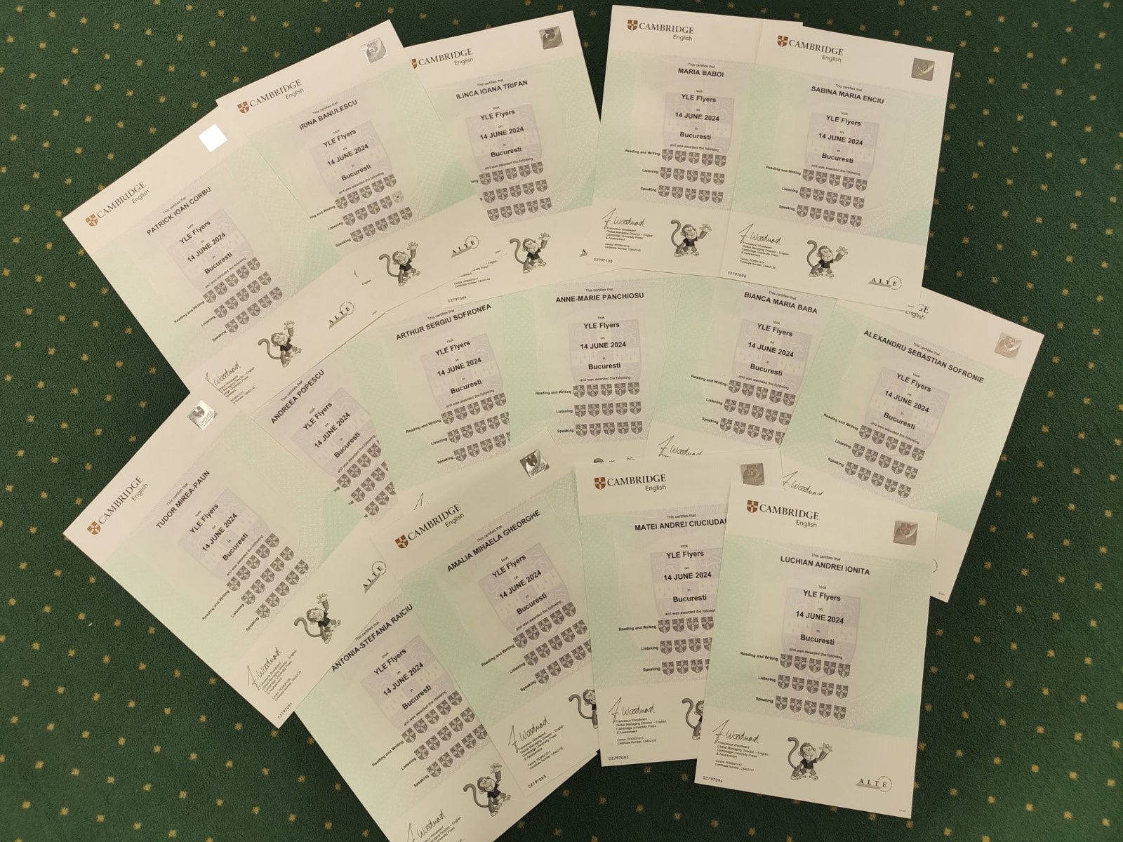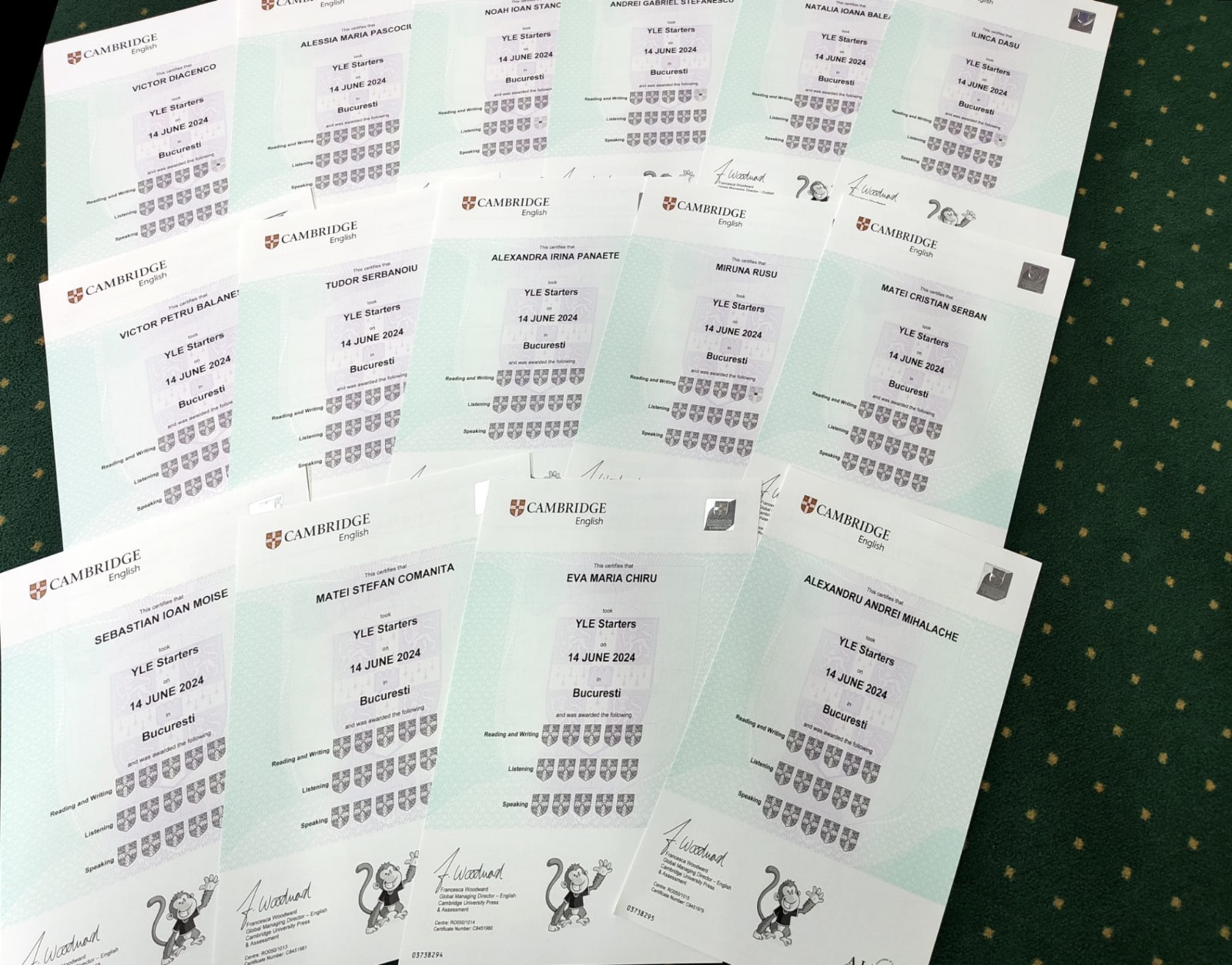 Examenele Cambridge (Starters, Movers și Flyers) evaluează competențe de citire, scriere, ascultare și vorbire iar certificatele obținute în urma examenelor pot fi folosite pentru echivalarea probei de competență lingvistică pentru admiterea în clasa a 5-a.