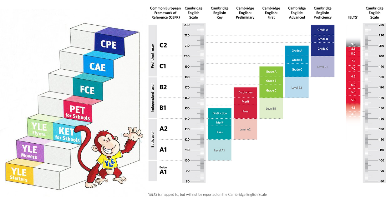 Fiecare examen Cambridge se încadrează conform Cadrului European Comun de Referință pentru Limbi (CECRL) pe niveluri distincte. Certificatele obținute prin promovarea examenelor Cambridge English dovedesc calitatea pregătirii, atestă nivelul lingvistic la nivel internațional, demonstrând cunoștințele de limba engleză și asigură admiterea în mediul educațional sau profesional.